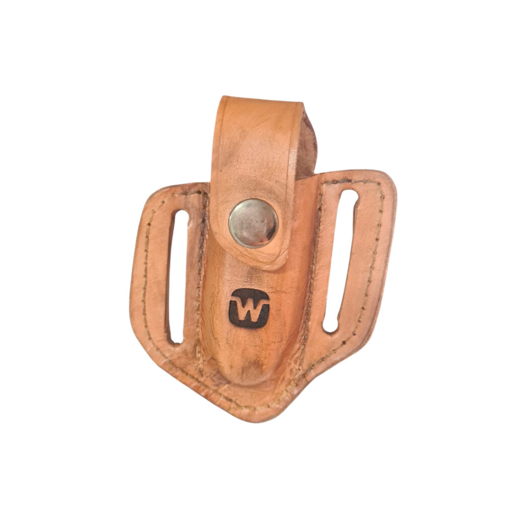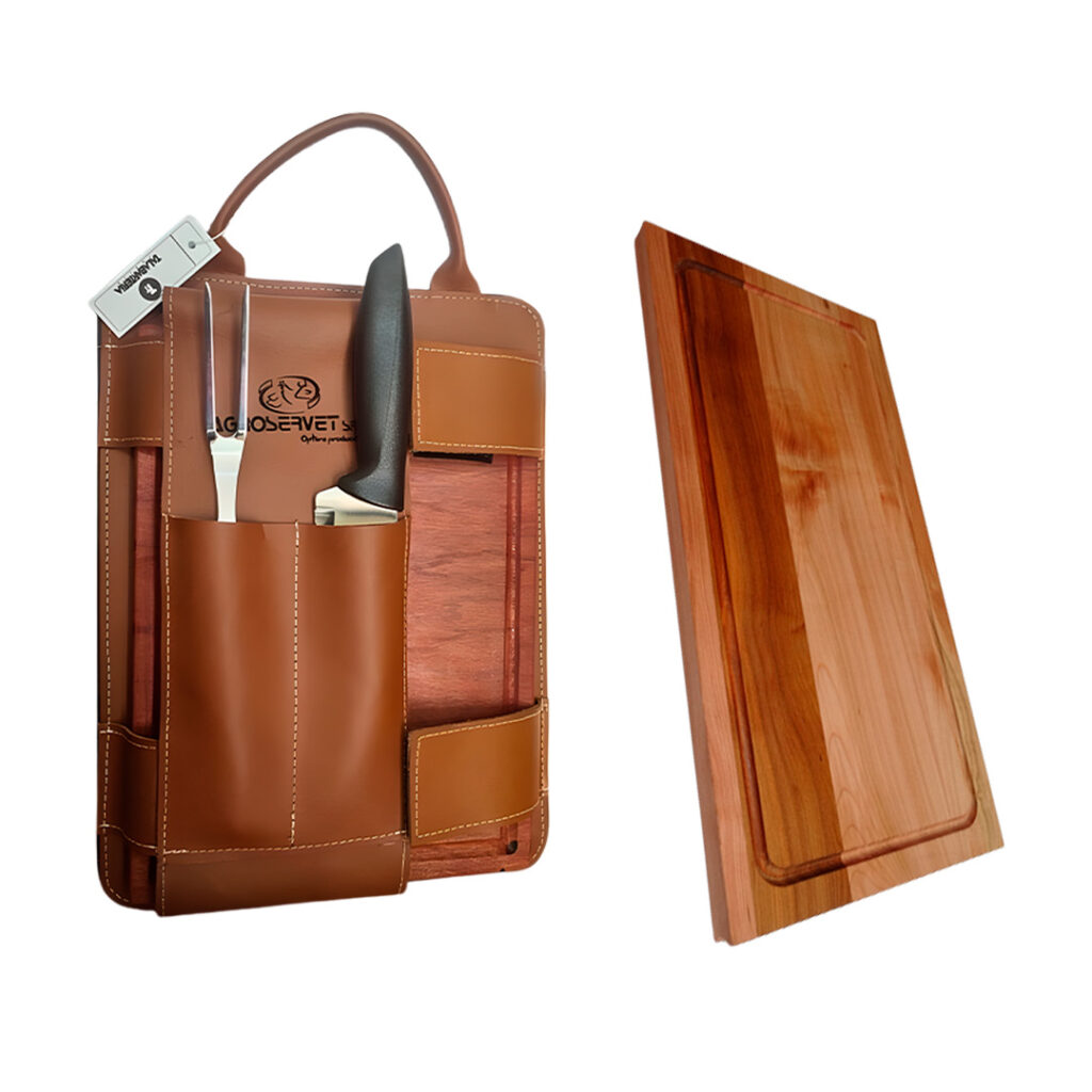 Cuero mocasín y graso de res. Protección robusta, incluye tabla de madera integrada